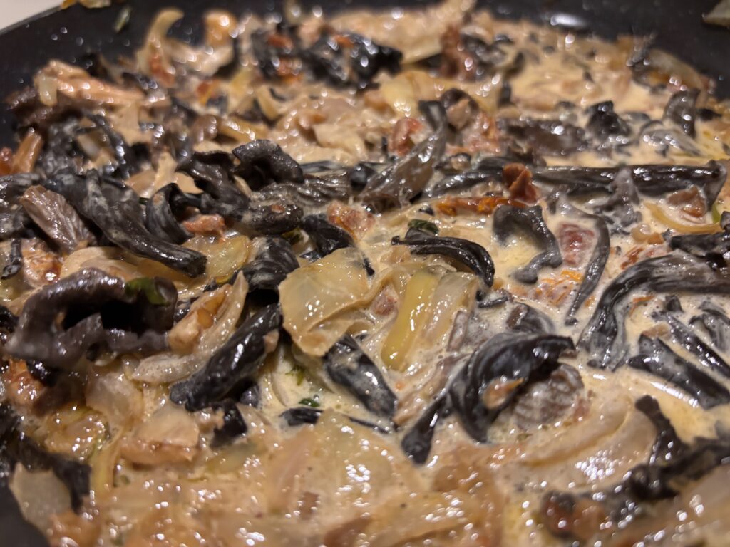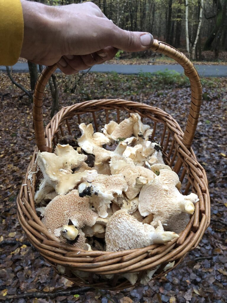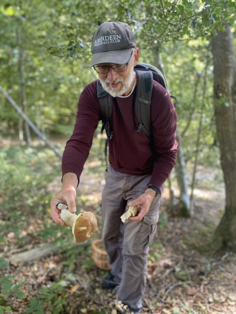 Now based in Broad Oak, Sussex, James leads forays and workshops throughout the year — often ending back around shared food, from Cep soup to pasta with Chanterelles and Horn of Plenty, made with other ingredients grown just metres away on his allotment.